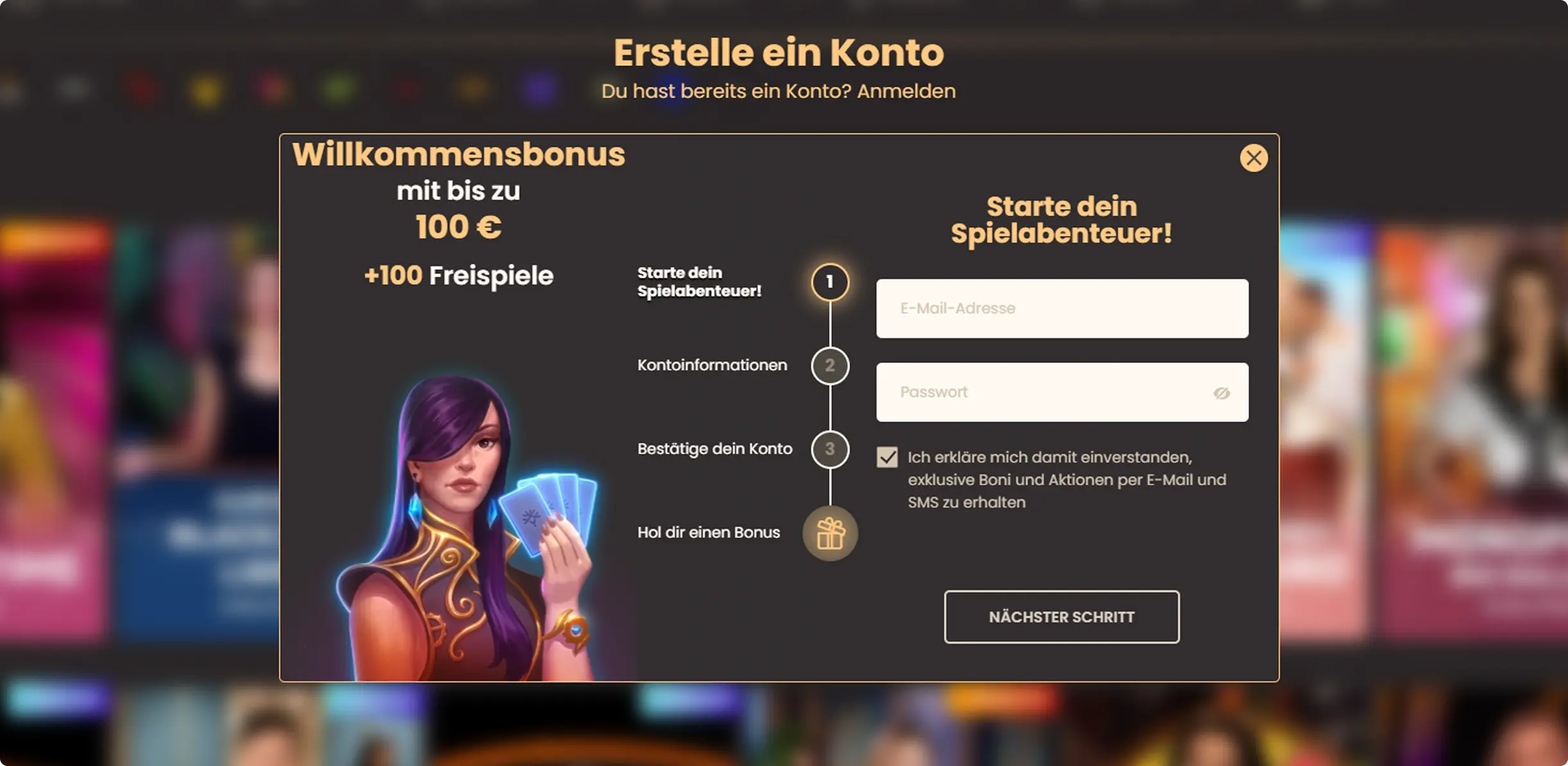 Unser Team hat ein Konto auf dieser Online-Spielbank eröffnet und aufgrund eigener Erfahrungen eine ausführliche Anleitung für deutsche Spieler vorbereitet. Unsere detaillierten Erklärungen führen Sie sicher durch den gesamten Registrierungsprozess.