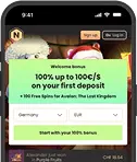 Jeder Neukunde kann bei der ersten Einzahlung einen 100% Einzahlungsbonus aktivieren. Sein Maximalbetrag beträgt 100 Euro. Darüber hinaus werden Sofortbonusrunde für Big Bass Bonanza 1000 und 100 Freispiele für Avalon: The Lost Kingdom bereitgestellt.